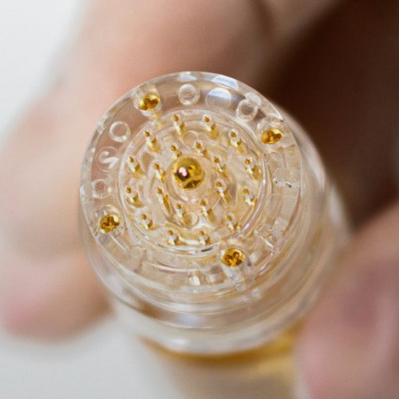 AquaGold — microchannel stamping that delivers a custom cocktail (e.g., hyaluronic acid + peptides) for refined pores, silky makeup lay, and event-ready radiance.